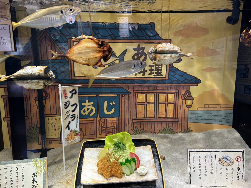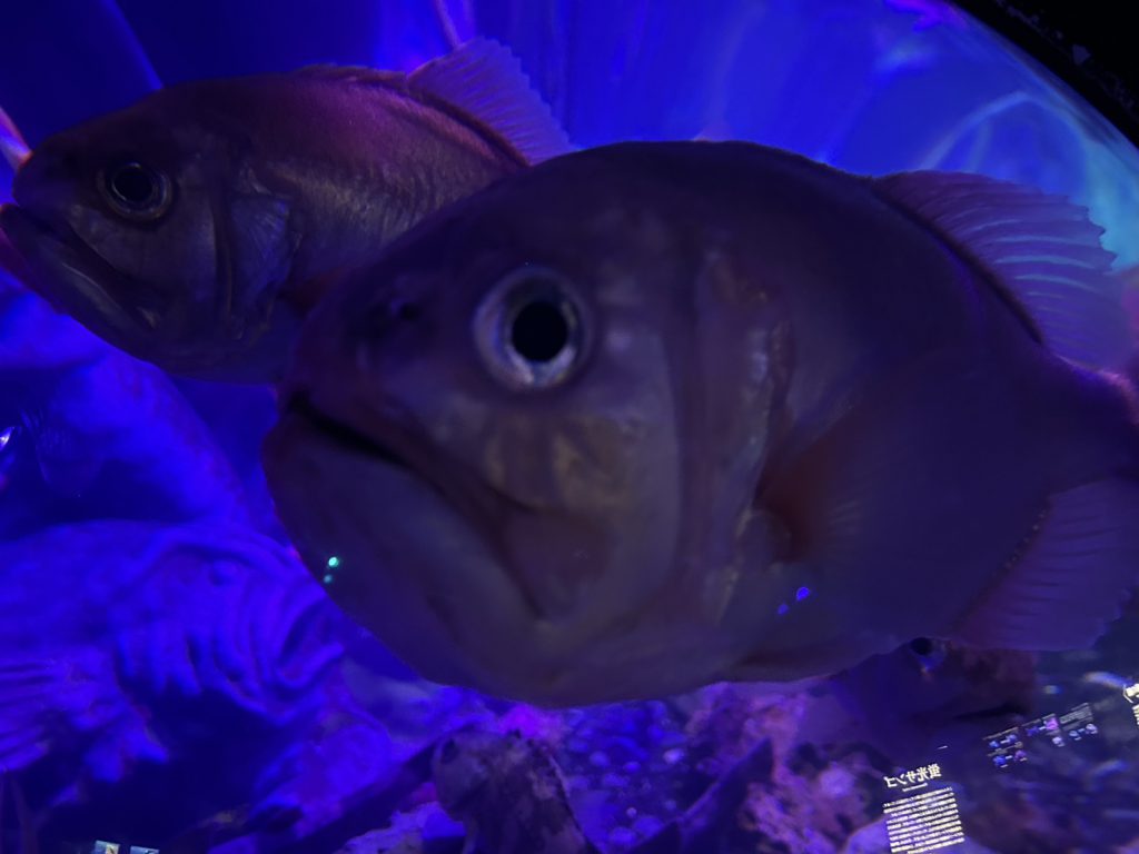 深海魚ではないけれど、知識コーナーで、「鯵」が「鯵フライ」や「鯵の開き」とともに水槽を泳いでいる光景はシュールでした。