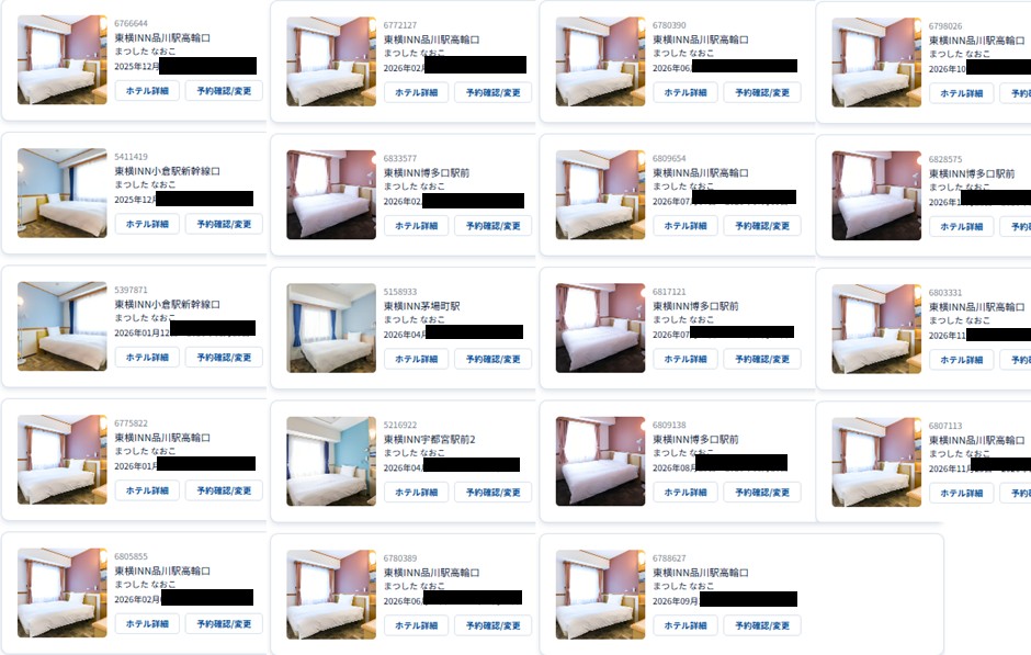 現時点の予約だけで42泊…ホント、お世話になっております。一年間の出張のうち、2割くらいは東横イン。