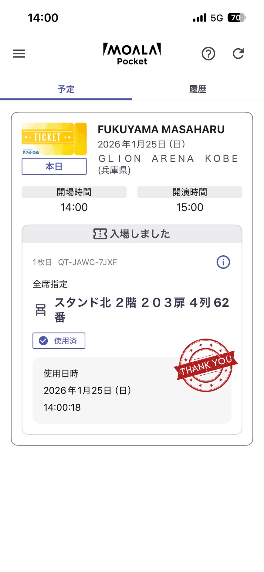 いつも「城ホール」もしくは「京セラドーム」参戦だけど、敢えて「GLION ARENA KOBE」チョイス!大正解( ̄▽ ̄)!1万人収容にしてはキュッ✨としてて一体感あって、ステージが近い!今後もありだな…。