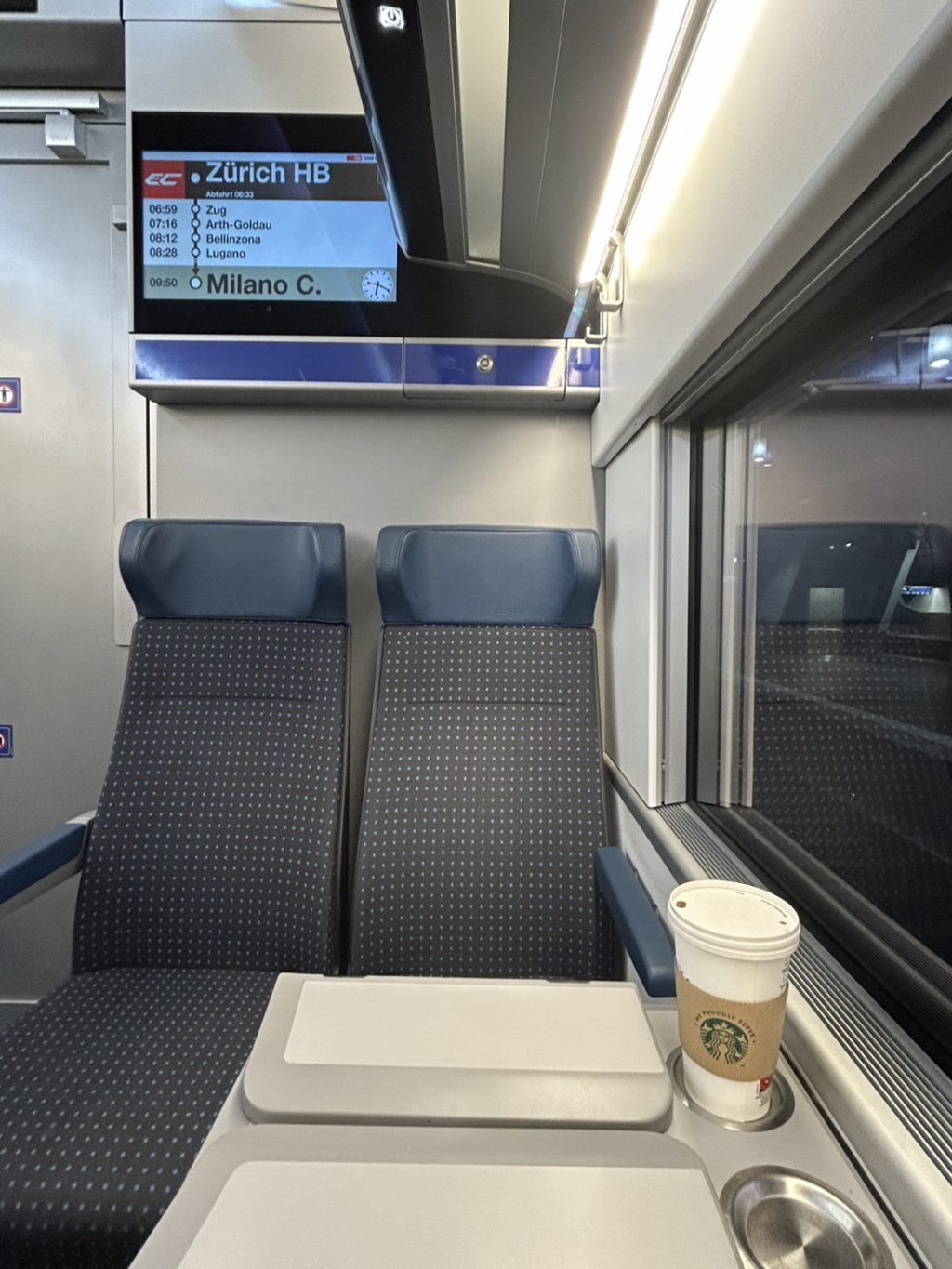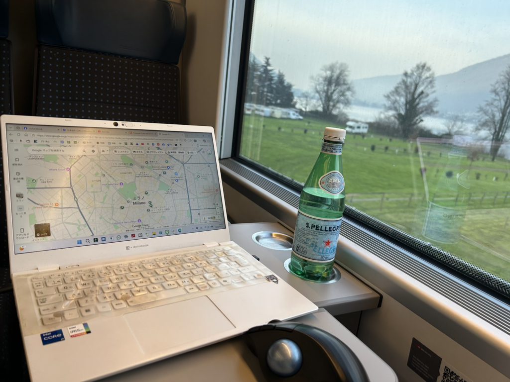 県を跨ぐように、国を跨げるシェンゲン協定圏内。チューリッヒ→ミラノが3時間半。机がこーんなに大きいので、PCでの仕事もはかどります。ただ、どうしてもコンセントが見たらない。ないのかなあ…と思っていたら…往路の半分くらいまできて、こんなところに見つけました!無料Wifiもサクサクです。日本の新幹線、せめてWifiもう少し頑張れ!