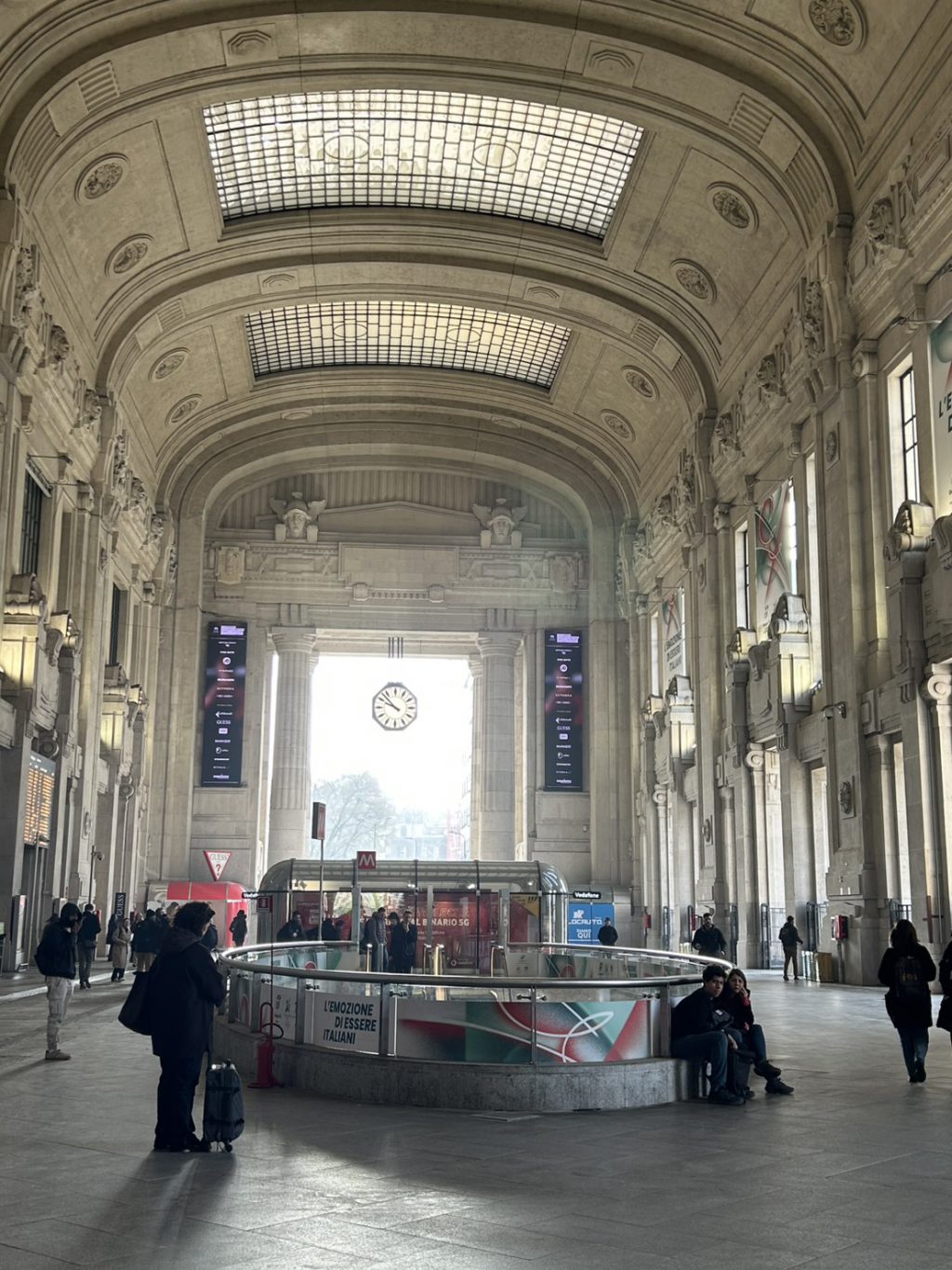 天井、こんなに高くする必要ある?と思いきや、ムッソリーニが「国家の威厳を建築で示せ」と、駅の設計をを巨大化、威圧的デザイン、帝国的スケールに変更させたのだそうです。